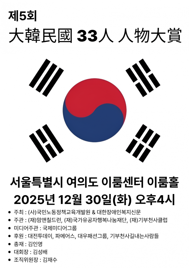 (정보제공) 제5회 2025 대한민국 33인 인물대상 시상식 개최 예정...