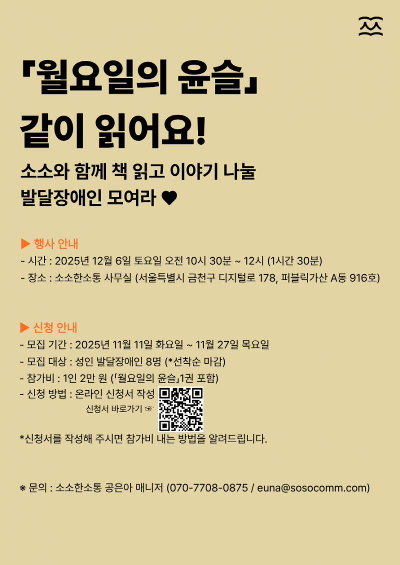 ※ 문의 : 소소한소통 공은아 매니저 (070-7708-0875 / euna@sosocomm.com)