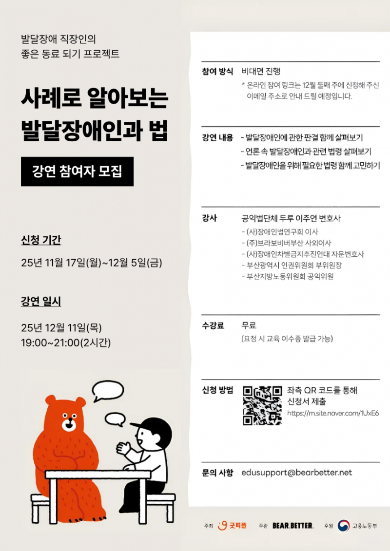 (정보제공) [베어베터X굿피플] 사례로 알아보는 발달장애인과 법 - 강연 참여자 모집