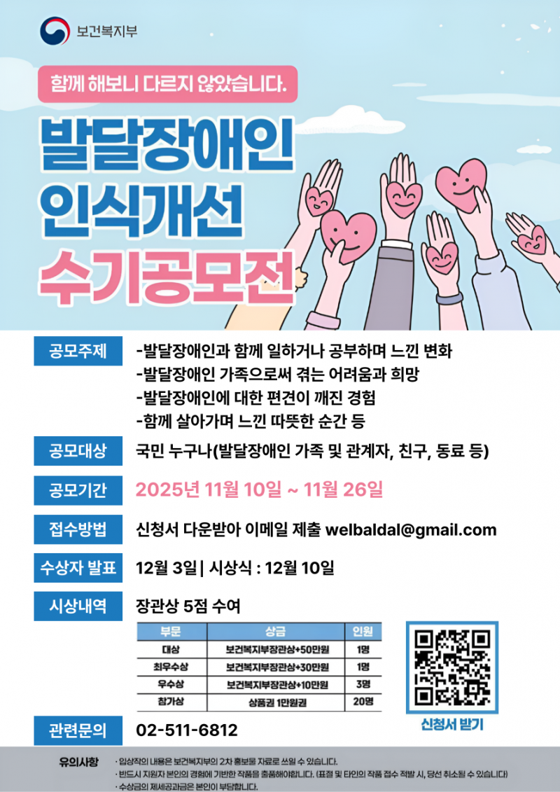 - 우수상: 보건복지부장관상 + 10만 원(3명)