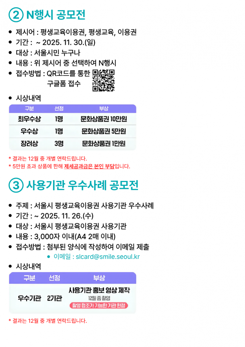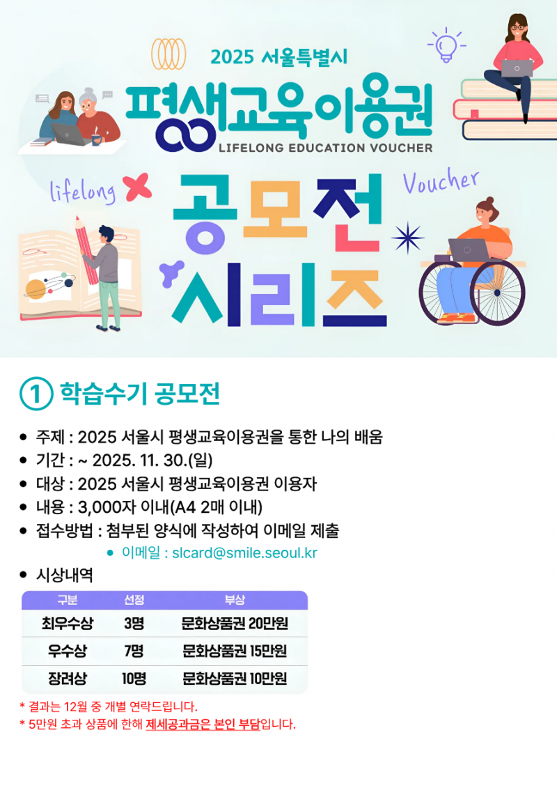 (1) 학습수기 공모전: 2025년 서울시 평생교육이용권 이용자의 학습경험 수기 공모