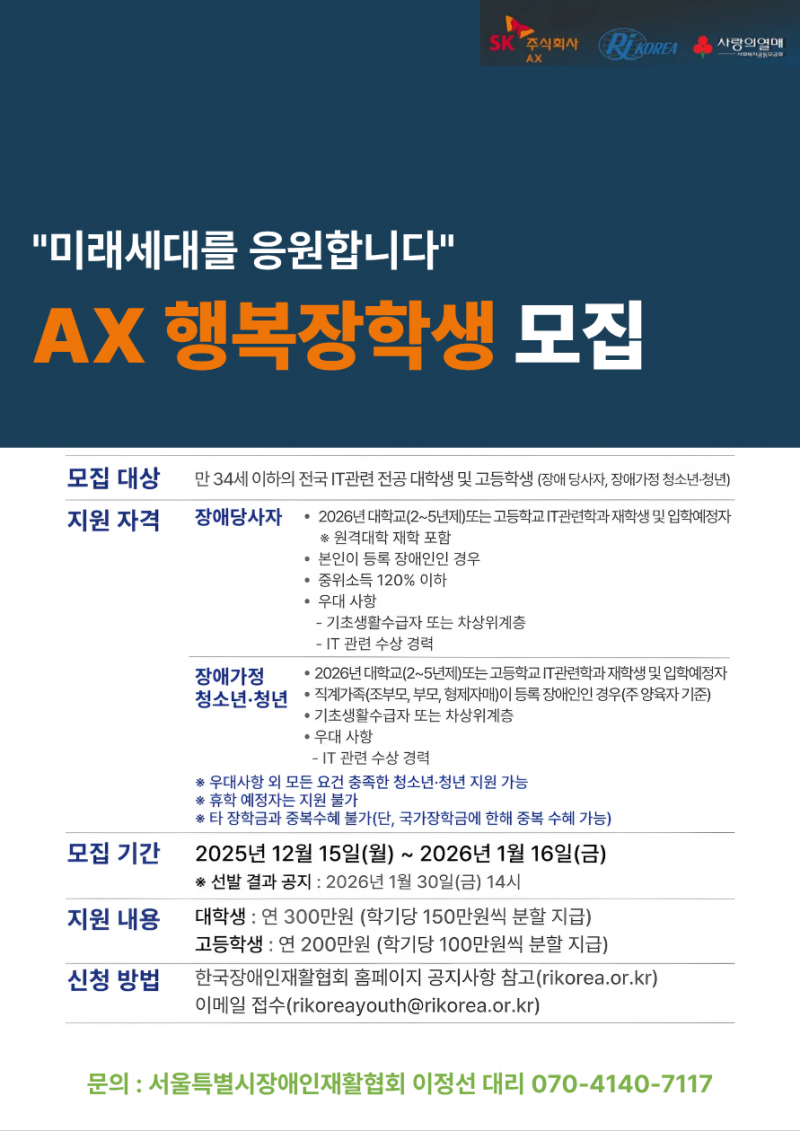 (정보제공) 2026년도 SK AX 행복장학생 모집 안내