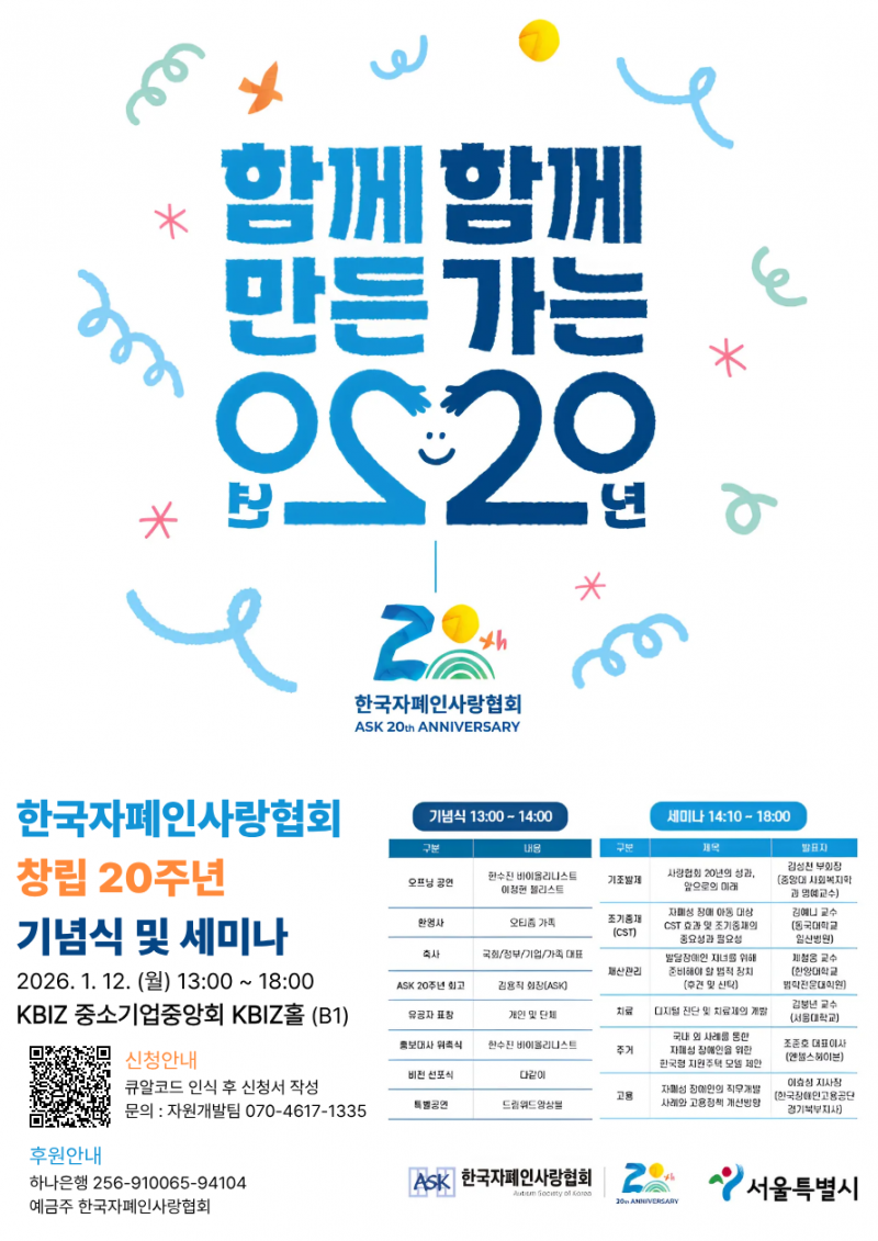 (정보제공) 한국자폐인사랑협회(ASK) 창립 20주년 기념식 & 세미나 신청서