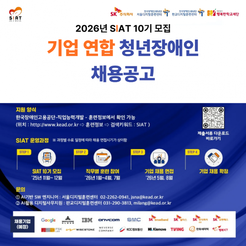 (정보제공) 한국장애인고용공단-SK주식회사, 2026년 기업채용연계형 ‘씨앗 10기’ 청년 장애인 훈련생 모집
