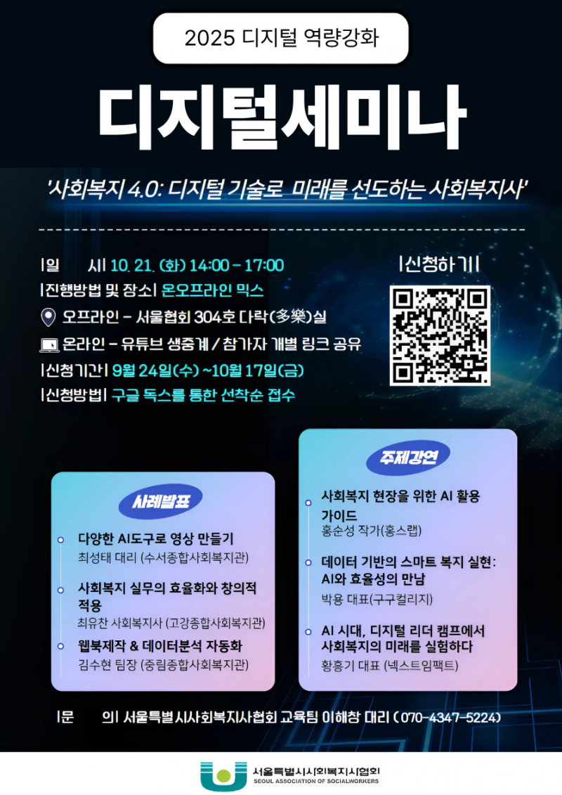 ○ 제목: 디지털 세미나 ‘사회복지 4.0: 디지털 기술로 미래를 선도하는 사회복지사’