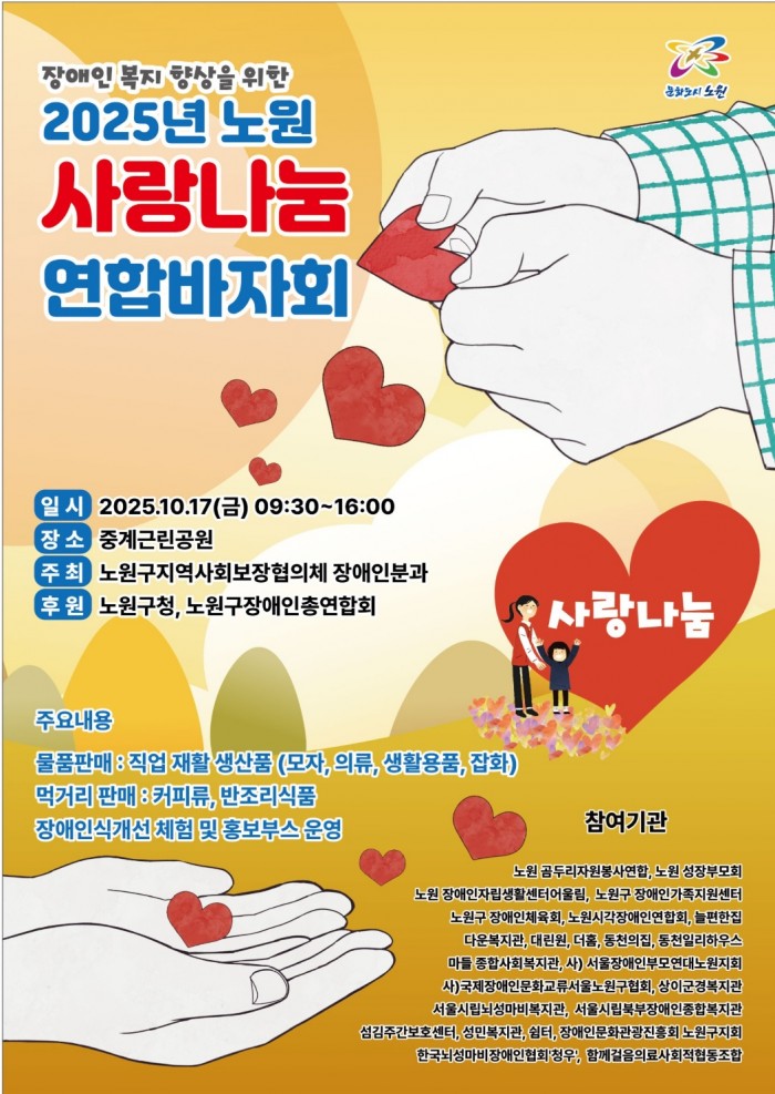 '노원 사랑나눔 연합바자회'는 장애인 복지 향상을 위해 마련된 특별한 행사입니다.